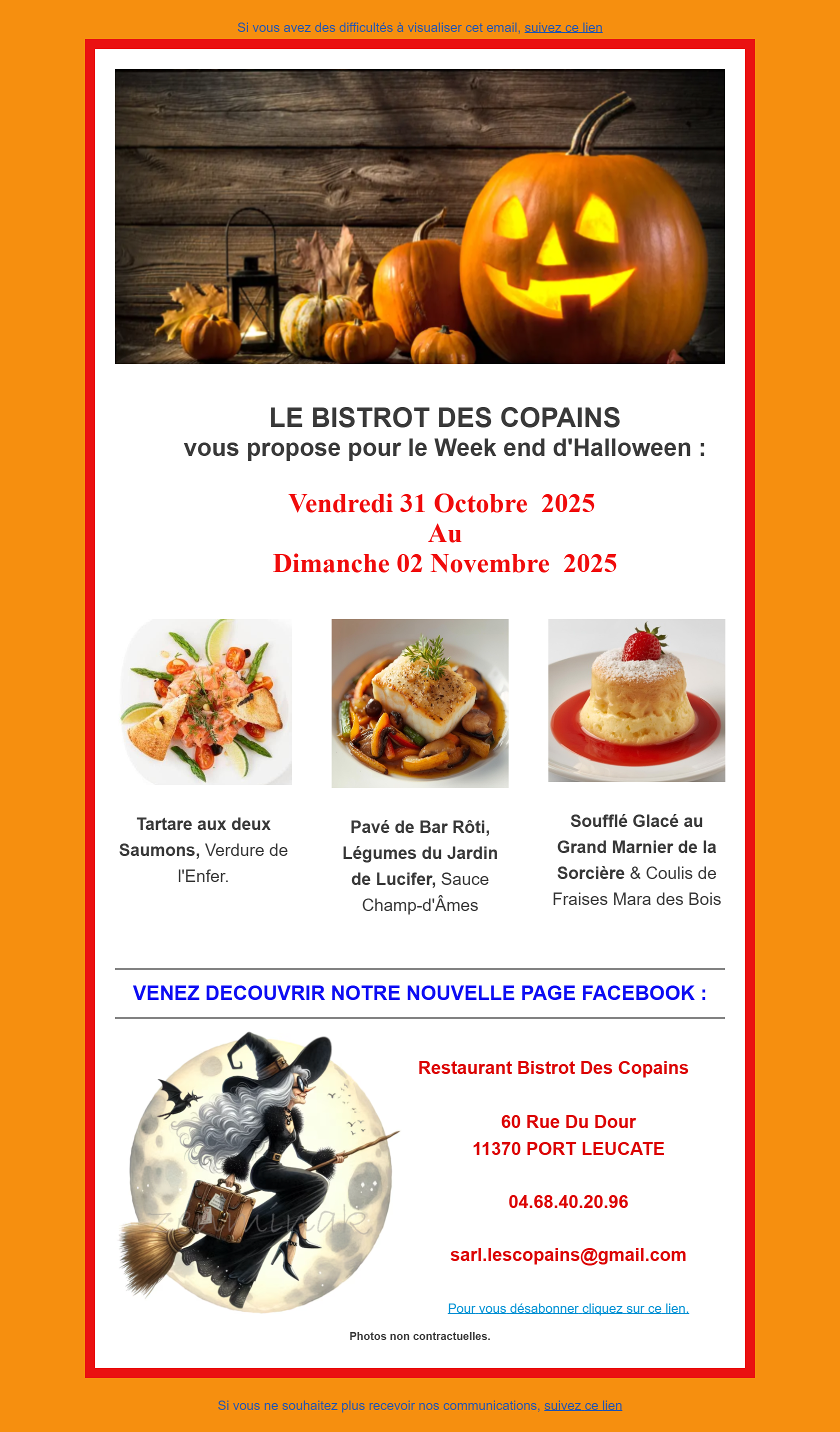 L’Etablissement est ouvert à l’année, nous organisons de nombreuses soirées hors saisons, possibilité d’organiser vos repas de reception ou autres (capacité de 120 pers).