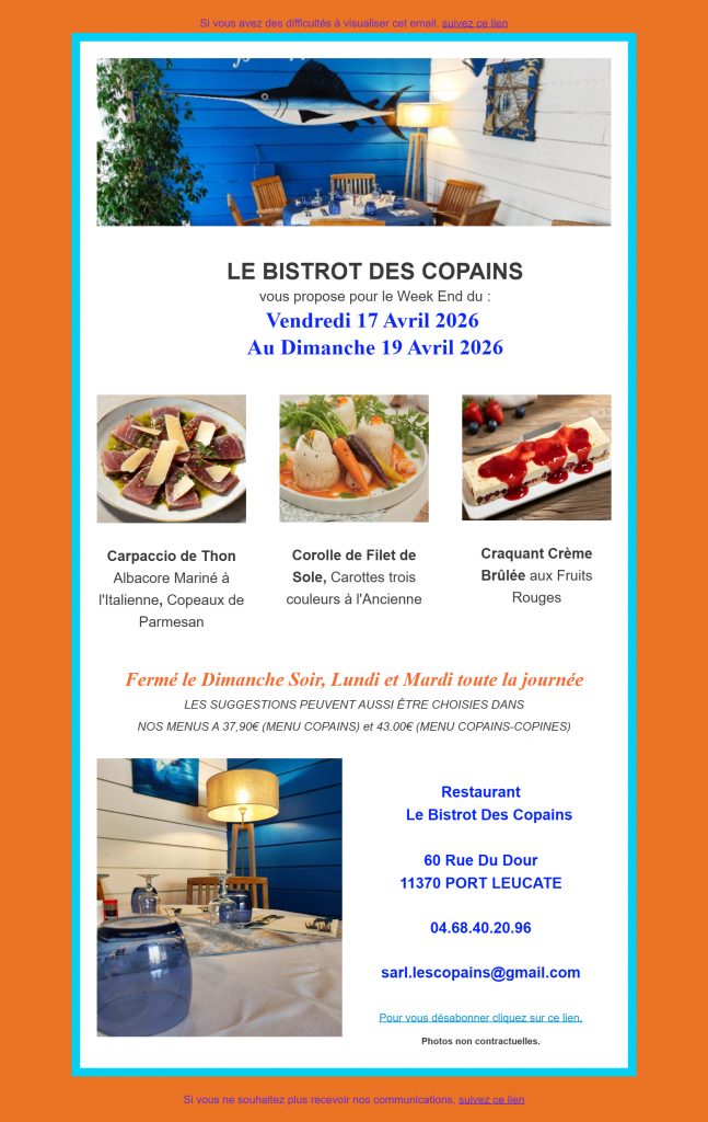 Restaurant crée il y à plus de 20 ans, spécialisé dans la cuisine méditerranéenne, nous vous proposons une carte variée : crustacés, poissons, viandes…