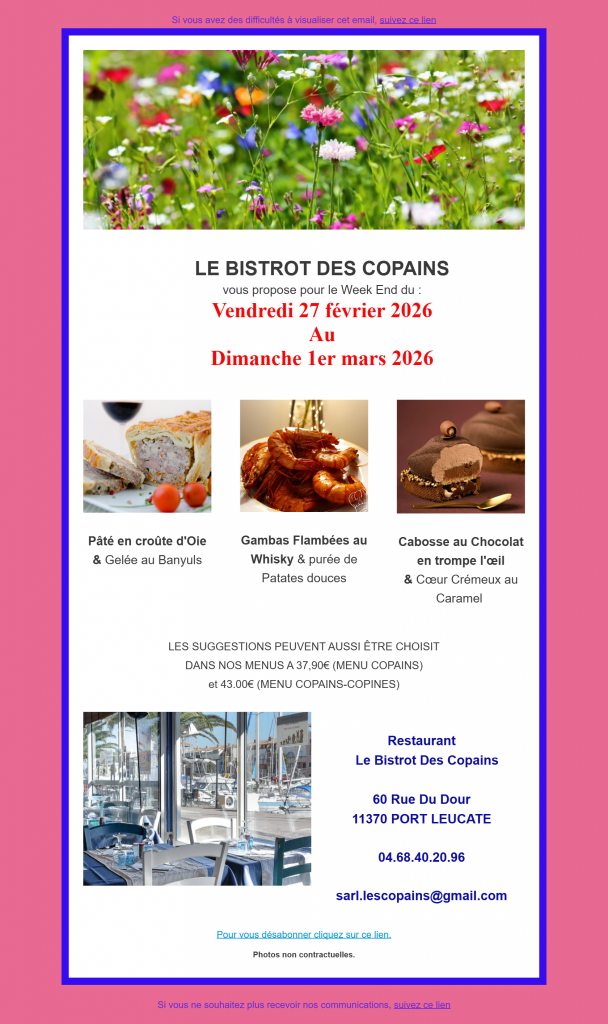 L’Etablissement est ouvert à l’année, nous organisons de nombreuses soirées hors saisons, possibilité d’organiser vos repas de reception ou autres (capacité de 120 pers).