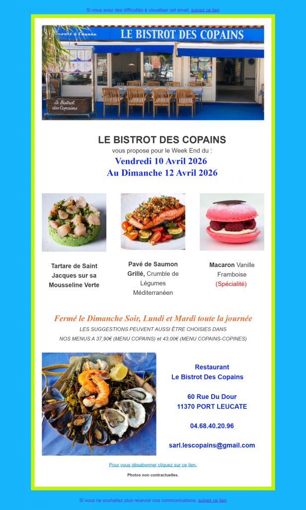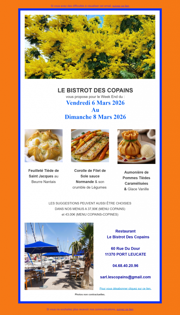 Nous vous accueillons sur la promenade du Quai Paurel à Port-Leucate.
